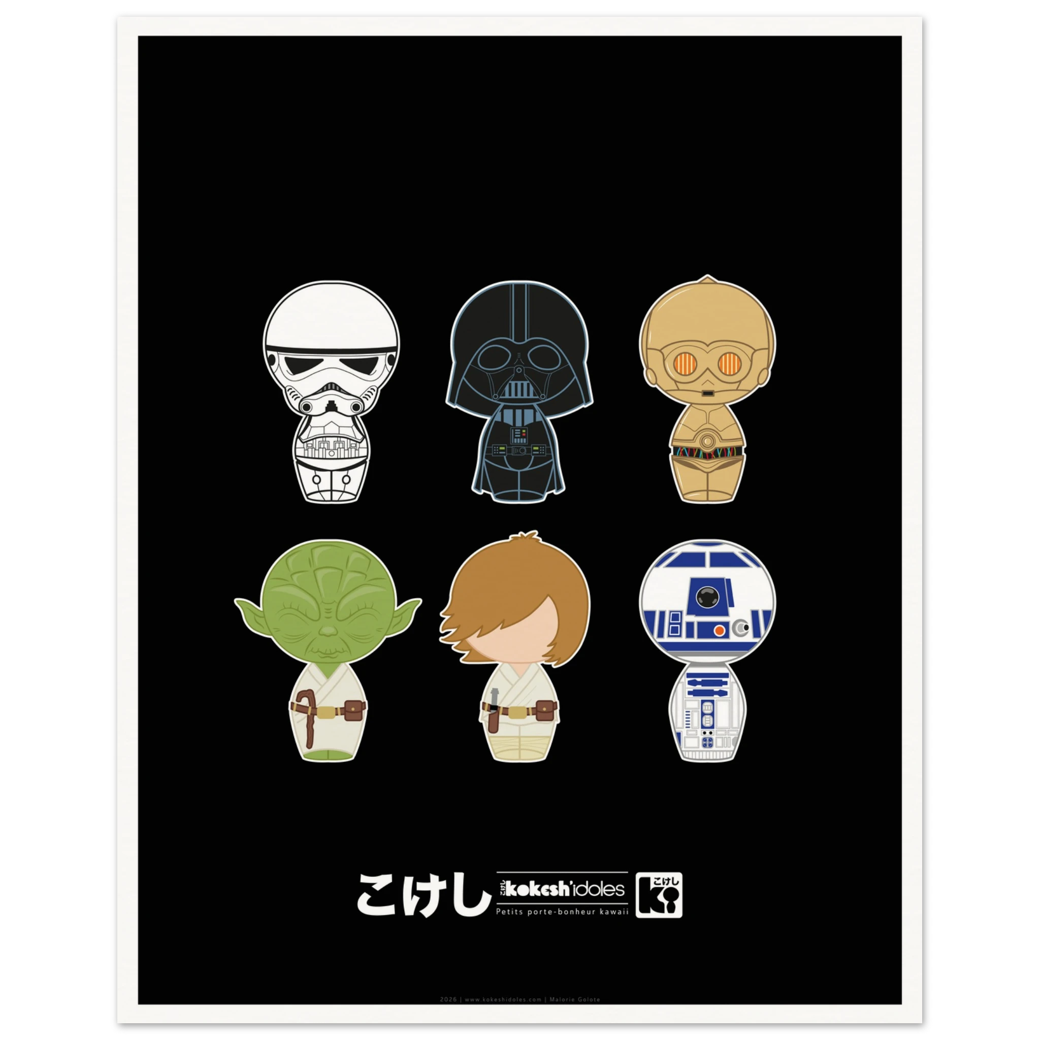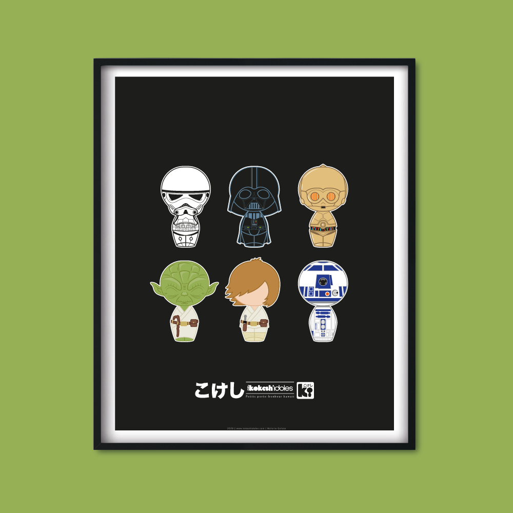 + frais de livraison AffichesTon intérieur va adorer cette affiche en papier épais et mat. Les kokeshis portent bonheur –> Be happy